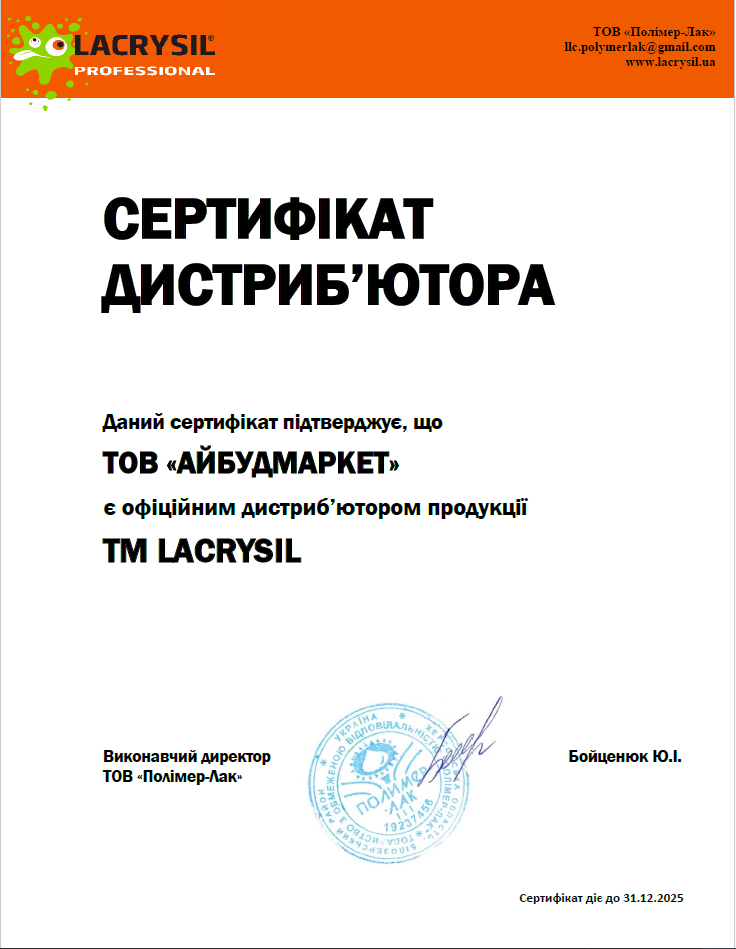 Чудова новина! ibudmarket.com.ua – офіційний дистриб'ютор продукції ТМ "Lacrysil" з широким асортиментом!