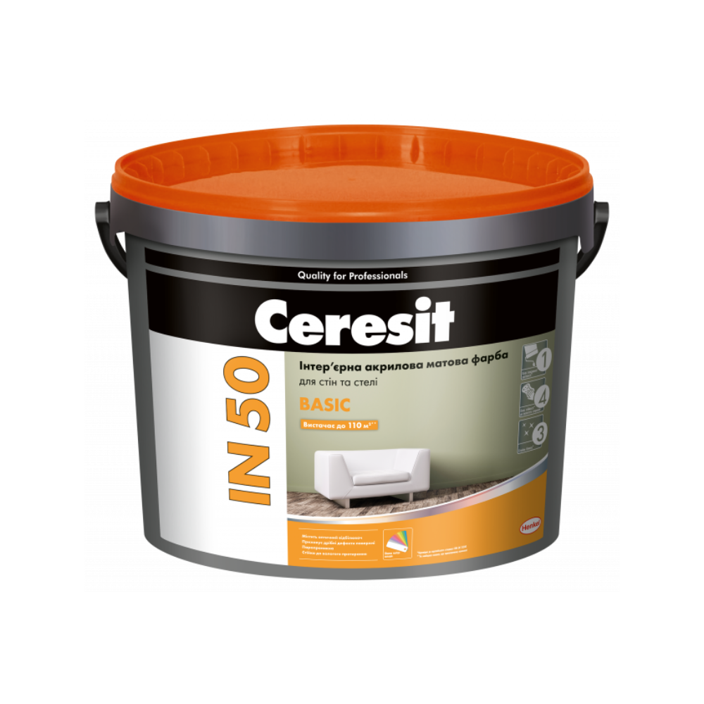Ceresit IN 50 BASIC (10л) Интерьерная акриловая матовая краска Base А