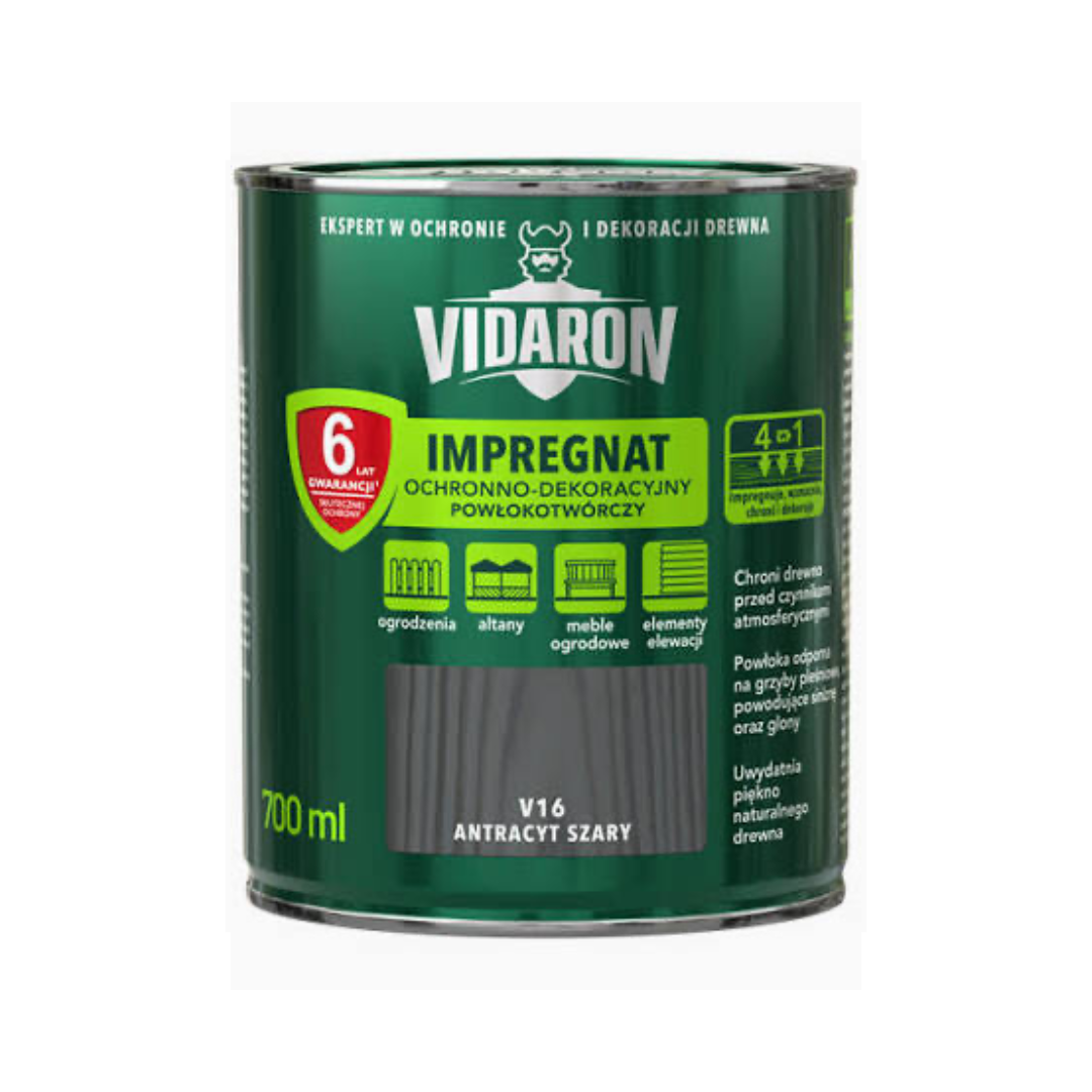 Ищете эффективное средство для защиты древесины от атмосферных воздействий, биологической коррозии и насекомых? VIDARON IMPREGNAT серый антрацит матовый V16 700 мл – высококачественный глубоко проникающий импегнат, обеспечивающий надежную защиту древесины внутри и снаружи помещений.