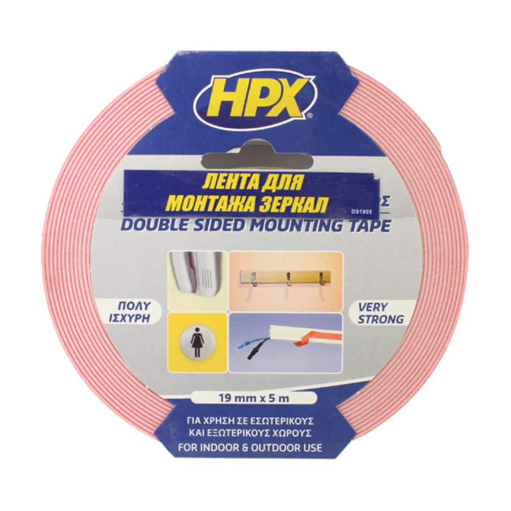 Лента двусторонняя вспененная для зеркал 19мм х 5м (картон) от HPX — это идеальное решение для надежного и быстрого монтажа зеркал, которое позволяет избежать сверления и использования традиционных креплений. Эта лента эффективно заменяет жидкие гвозди, заклепки и саморезы, обеспечивая прочное и долговечное соединение. Вспененная основа компенсирует неровности поверхности, а также устойчива к вибрациям. Лента обладает отличной адгезией к широкому спектру поверхностей, включая обработанное дерево, ламинат, керамическую плитку, стекло, металл, пластик и грунтованный бетон.