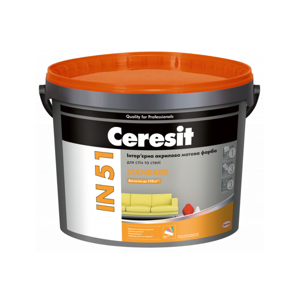 Ceresit IN 51 STANDARD (10л) Інтер'єрна акрилова матова фарба Base A