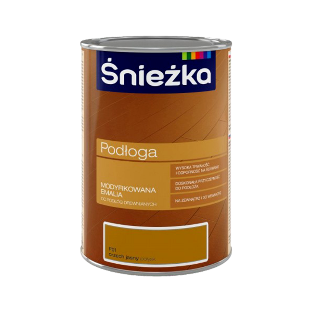 Модифікована емаль Śnieżka PODLOGA P01, колір світлий горіх, глянцева, 1 л – це універсальний лакофарбовий матеріал, розроблений для ефективного захисту та декоративного оздоблення різних поверхонь. Вона ідеально підходить як для внутрішніх, так і для зовнішніх робіт, забезпечуючи довговічне та стійке до стирання покриття. Глянцева поверхня кольору світлий горіх додасть вашим підлогам, сходами, дерев'яним або бетонним конструкціям естетично привабливий вигляд.