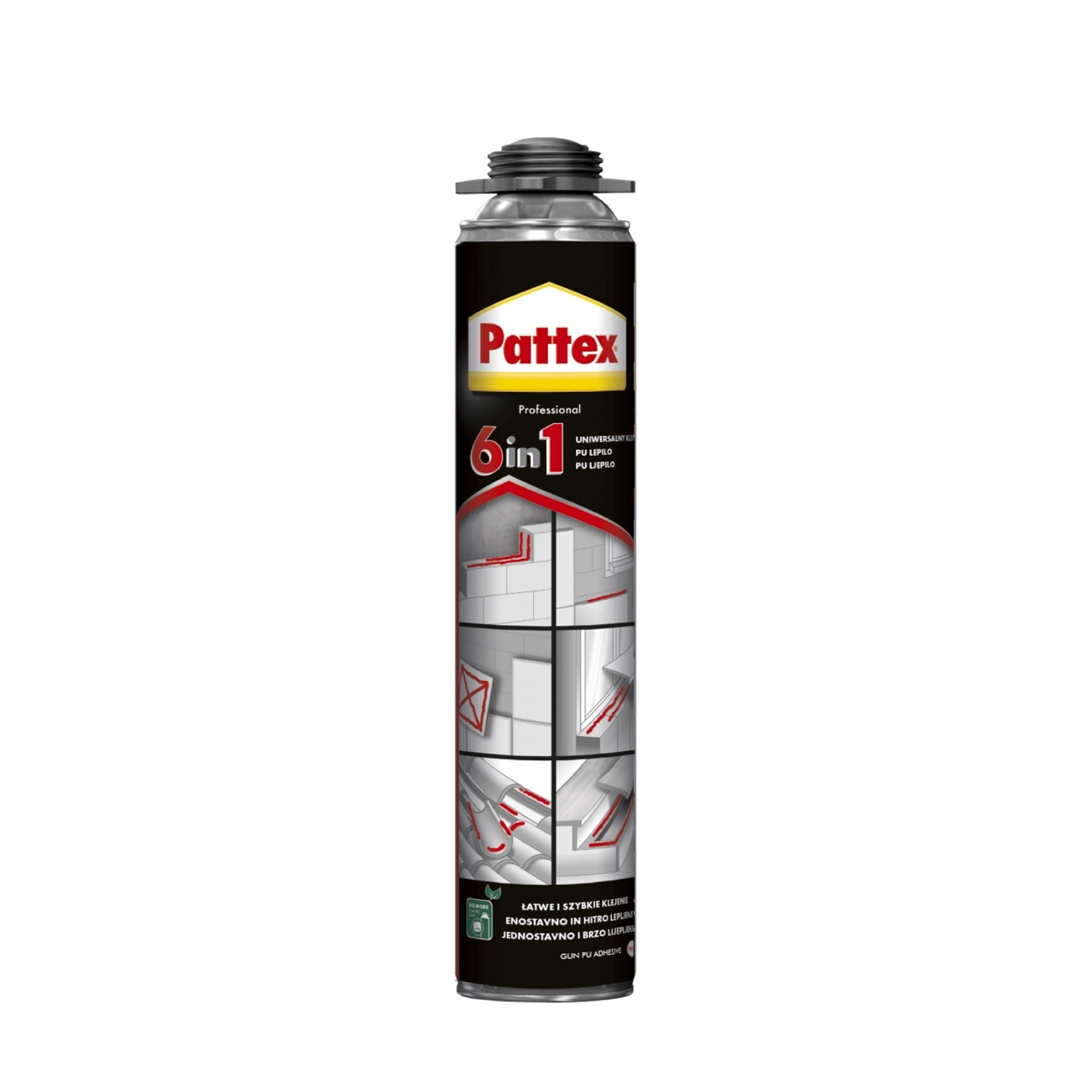 Pattex 6 в 1 піна-клей 750 мл (PRO) — це інноваційна, однокомпонентна поліуретанова клей-піна, що об'єднує в собі шість ключових функцій для ефективного склеювання та монтажу. Цей універсальний продукт розроблений для професійного використання і забезпечує виняткову адгезію до широкого спектра будівельних матеріалів. Завдяки своїй розширювальній формулі, Pattex 6 в 1 ідеально підходить для застосування на нерівних поверхнях, легко заповнюючи порожнини та щілини.