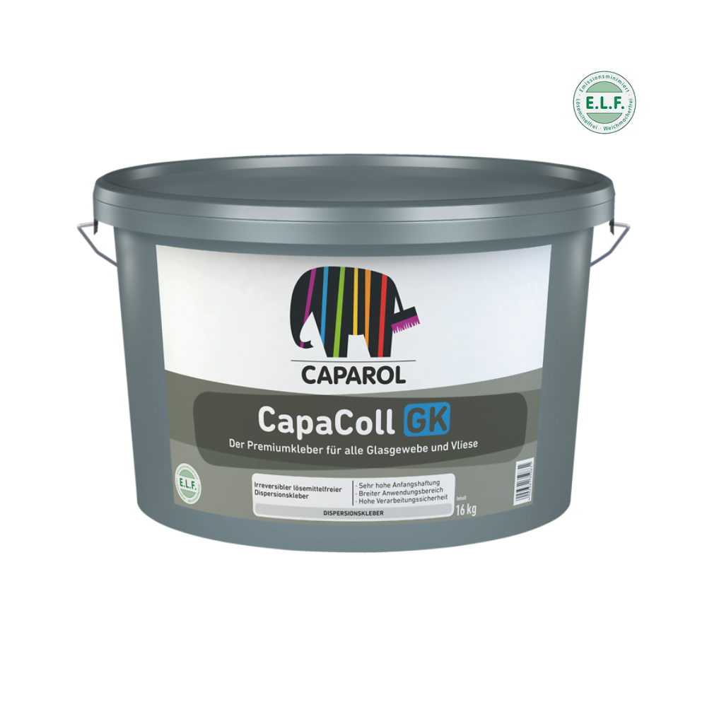 Caparol "CapaColl GK E.L.F." - це високоякісний, екологічний дисперсійний клей, розроблений спеціально для надійного та безпечного приклеювання флізелінових шпалер та покриттів з нетканих матеріалів усередині приміщень. Завдяки відсутності розчинників, він ідеально підходить для використання в житлових і громадських приміщеннях, забезпечуючи здоровий мікроклімат. Цей клей легко наноситься, має високу адгезію та гарантує довговічний результат без розбухання та усадки покриття. Його білий колір не просвічується крізь тонкі шпалери, а еластичність дозволяє компенсувати невеликі нерівності основи.