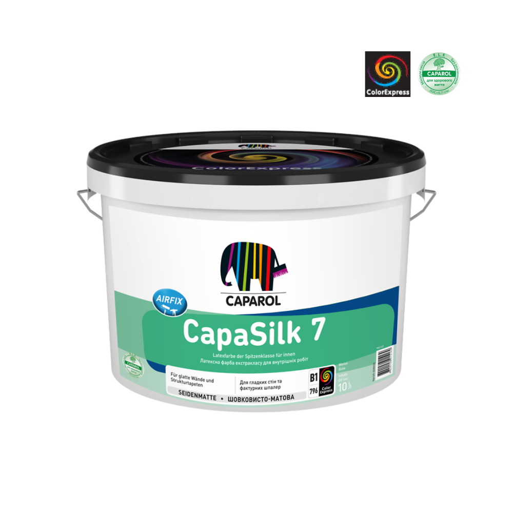 Краска интерьерная, латексная, шелковисто-матовая Caparol CapaSilk E.L.F. 7, B1 белая, 10л