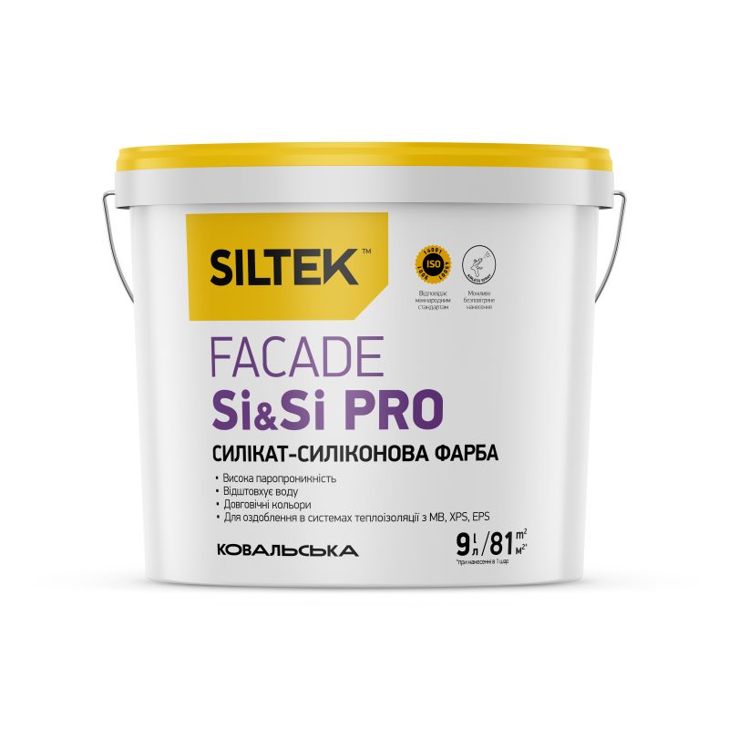 Siltek Facade Si & Si Pro Краска силикат-силиконовая. База FA (9 л) – это высококачественная фасадная краска, сочетающая в себе лучшие свойства силикатных и силиконовых красок, предназначенная для надежной окраски и долговечной защиты разнообразных минеральных поверхностей. Этот продукт идеально подходит для наружных и внутренних работ, обеспечивая непревзойденную стойкость и эстетичный вид.