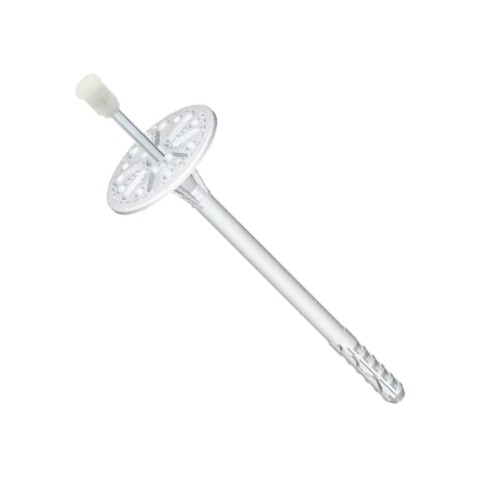 Конструкция и материалы: Дюбель состоит из трех ключевых элементов: шляпки, металлического стержня и распорной части. Круглая шляпка-диск обеспечивает надежное прижимание изоляционного материала к стене, равномерно распределяя нагрузку. Металлический стержень, изготовленный из стали, соединяет шляпку с распорной частью, которая надежно фиксируется в материале основания. Распорная часть дюбеля, а также его шляпка, выполнены из высококачественного вторичного полиэтилена, что гарантирует прочность и долговечность всей конструкции.