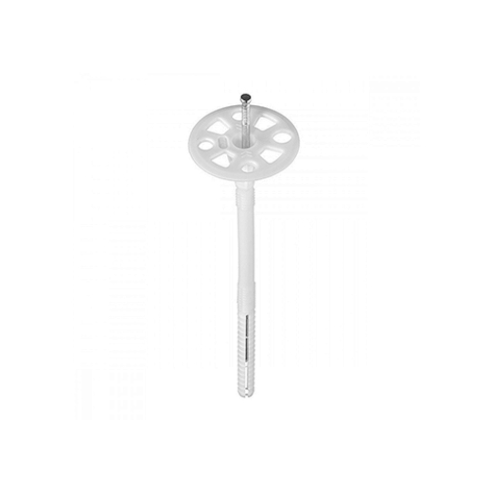 Конструкція та матеріали: Основною особливістю даного дюбеля є металевий стержень, який забезпечує виняткову міцність та довговічність кріплення. Доповнює його термоголова, яка мінімізує містки холоду та покращує теплоізоляційні властивості системи. Ця комбінація гарантує не тільки надійну фіксацію, але й високу енергоефективність усієї конструкції.