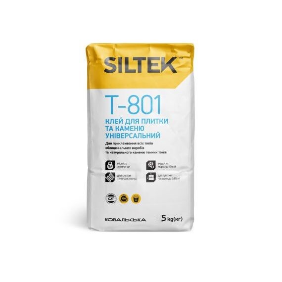 Ищете универсальный и надежный клей для облицовки поверхностей плиткой и камнем? Siltek Т-801 – это высококачественная сухая клеевая смесь, разработанная для выполнения широкого спектра внутренних и наружных работ. Благодаря своей сбалансированной формуле, клей обеспечивает отличную адгезию к различным типам поверхностей, включая бетон, кирпич, цементно-песчаные и гипсовые основания.