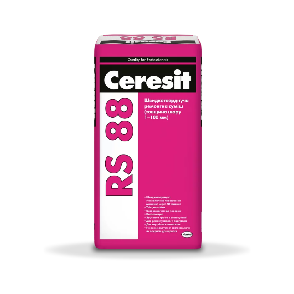 Ceresit RS 88 (25кг) – це високоякісна, швидкотверднуча ремонтна суміш, розроблена для ефективного та оперативного усунення дефектів на горизонтальних і вертикальних поверхнях. Завдяки своїм унікальним властивостям, вона є ідеальним рішенням для термінового ремонту підлог, сходів, рамп та інших бетонних і цементно-піщаних основ. Ця суміш дозволяє створювати шари товщиною від 1 до 100 мм, що робить її надзвичайно універсальною для різноманітних ремонтних завдань.