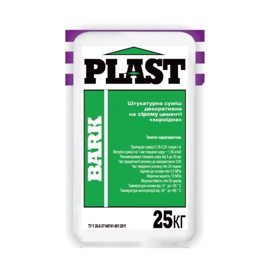 Bark Plast (25 кг) Штукатурка декоративна на сірому цементі "короїд" 2,5 мм (48шт/пал.)
