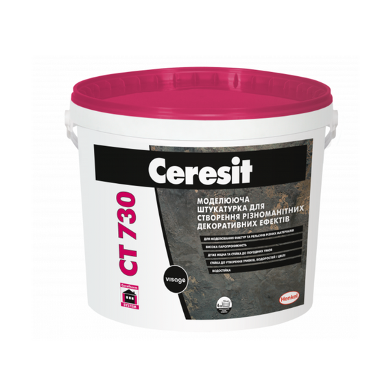 Ceresit СТ 730 – це високоякісна мінеральна моделююча штукатурка, призначена для створення декоративних тонкошарових покриттів на фасадах будівель. Завдяки своїй спеціальній формулі та зернистій структурі, штукатурка СТ 730 є ідеальною базою для подальшого фарбування силікатними, силіконовими або акриловими фарбами Ceresit, дозволяючи досягти різноманітних фактурних ефектів.