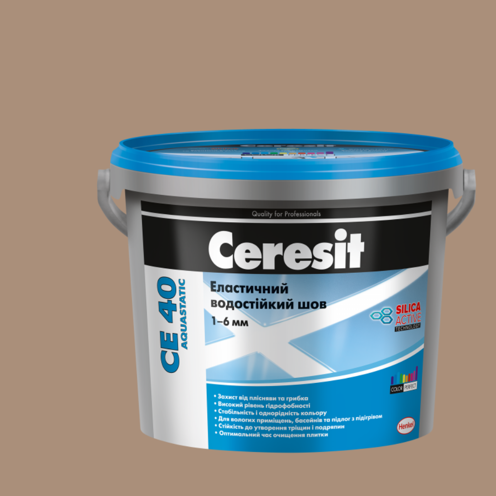 Ceresit CE 40 Aquastatic (5кг) Еластичний водостійкий кольоровий шов до 6мм карамель 46 – це високоякісна, еластична затирка для швів, призначена для плитки, що укладається в приміщеннях з підвищеною вологістю, а також для зовнішніх робіт. Ця затирка ідеально підходить для облицювальних матеріалів з різною поверхнею – керамічної плитки, керамограніту, мозаїки, натурального та штучного каменю. Завдяки своїй унікальній формулі, Ceresit CE 40 Aquastatic забезпечує надійний захист швів від води, забруднень та утворення плісняви.