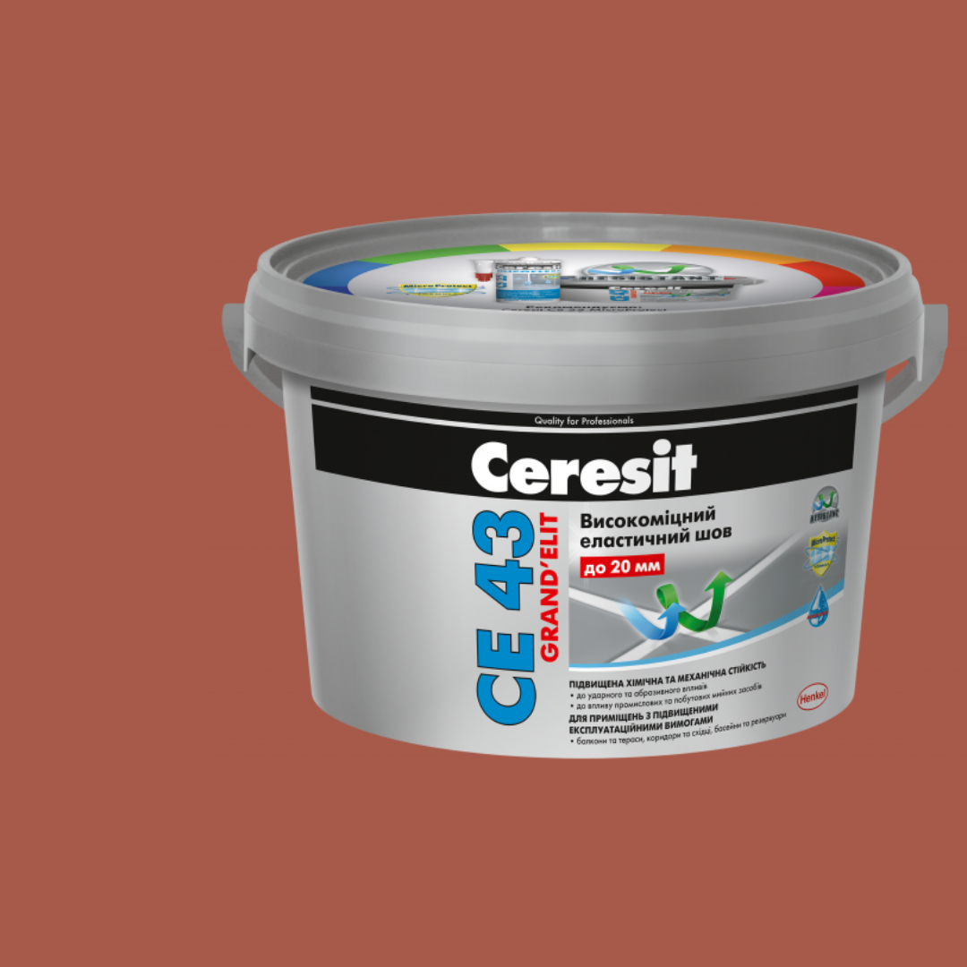 Ceresit СЕ 43 Grand'elit – це інноваційний надміцний та високоеластичний фугувальний розчин, розроблений спеціально для заповнення швів шириною від 2 до 20 мм між різноманітними облицювальними матеріалами: керамічною плиткою, натуральним і штучним каменем, а також мозаїкою. Завдяки унікальній формулі, що поєднує сучасні полімерні технології та високоефективні добавки, Ceresit СЕ 43 Grand'elit забезпечує неперевершену міцність, довговічність та еластичність швів, що робить його ідеальним вибором для об'єктів з високими експлуатаційними навантаженнями, змінними температурними режимами та підвищеною вологістю.