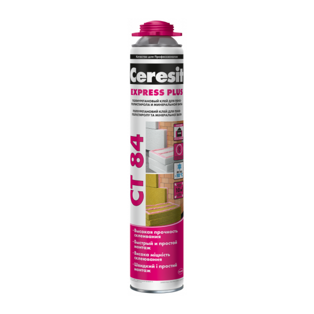 Ceresit СТ 84 Полиуретановая смесь Express Plus 850 мл — это инновационный однокомпонентный полиуретановый клей, разработанный специально для быстрого и эффективного крепления пенополистирольных и минераловатных плит к фасадам зданий при устройстве систем наружного утепления (ETICS). Этот высокотехнологичный клей-пена является отличной альтернативой традиционным сухим клеевым смесям, значительно ускоряя процесс монтажа и снижая трудозатраты. Благодаря своей формуле Express Plus, он обеспечивает сверхбыстрое схватывание и высокую прочность сцепления, что делает его идеальным решением для объектов, где требуется оперативность.
