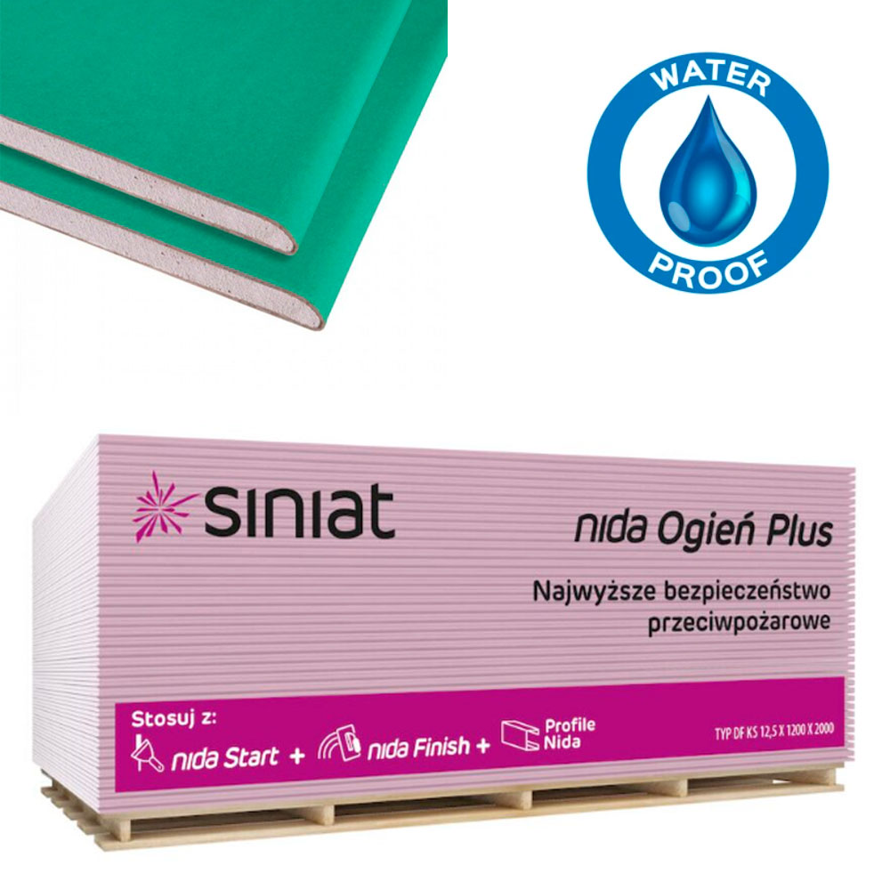 SINIAT SMART H Плиты гипсокартонные влагостойкие 12,5X1200X2500 (72 шт/пал.)
