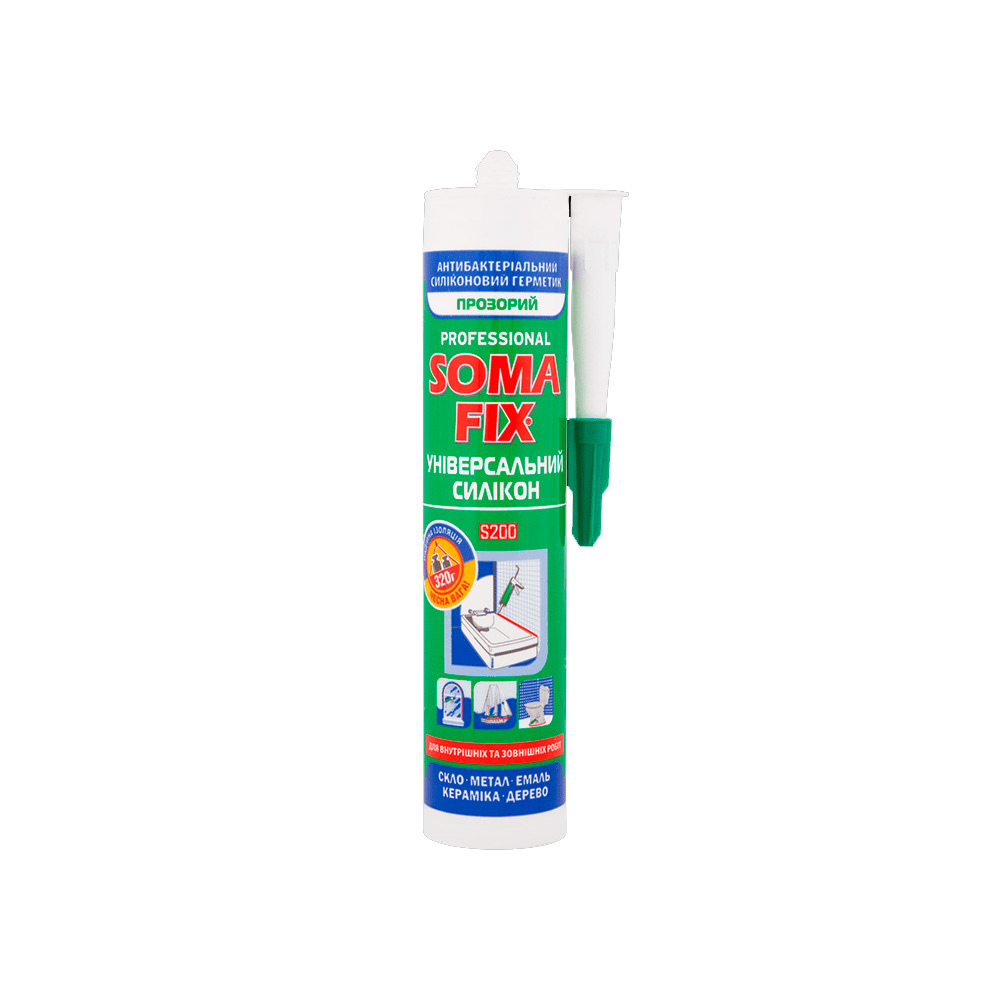 S200 Силикон SOMA FIX универсальный прозрачный, 280 мл – это высококачественный однокомпонентный силиконовый герметик, разработанный для широкого спектра герметизационных работ. Благодаря своей ацетоксильной основе, он обеспечивает прочное и долговечное уплотнение. Этот универсальный силиконовый герметик Soma Fix является чрезвычайно удобным в применении материалом, который широко используется как для внутренних, так и для наружных работ. Он идеально подходит для герметизации оконных рам, дверей, сантехнических систем, а также для уплотнения различных строительных конструкций. Его низкая усадка и превосходная устойчивость к внешним условиям, таким как перепады температур, вода и УФ-излучение, гарантирует максимальную надежность и долговечность выполненных работ. S200 Силикон SOMA FIXдемонстрирует отличную адгезию к непористым материалам, включая металл, стекло, эмаль, керамическую плитку, обеспечивая при этом превосходную гидроизоляцию.