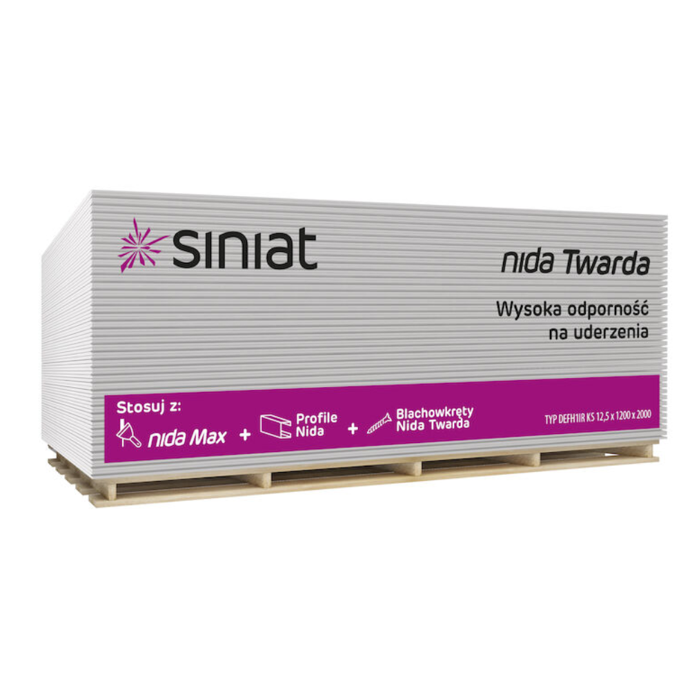 Nida Twarda ідеально підходить для обшивки стін та стель у громадських будівлях з високим ризиком механічних пошкоджень, таких як школи, лікарні, спортивні зали, коридори та інші місця з інтенсивним рухом. Її вологостійкі властивості дозволяють використовувати її в приміщеннях з періодичним підвищенням вологості (наприклад, у технічних приміщеннях, кухнях), а покращена вогнестійкість робить її незамінною там, де важлива пожежна безпека. Попри свої посилені характеристики, Nida Twarda залишається легкою та зручною для різання, монтажу та транспортування, подібно до стандартного гіпсокартону, що спрощує роботу з нею. Доставка по всій Україні забезпечить зручне отримання вашого замовлення.