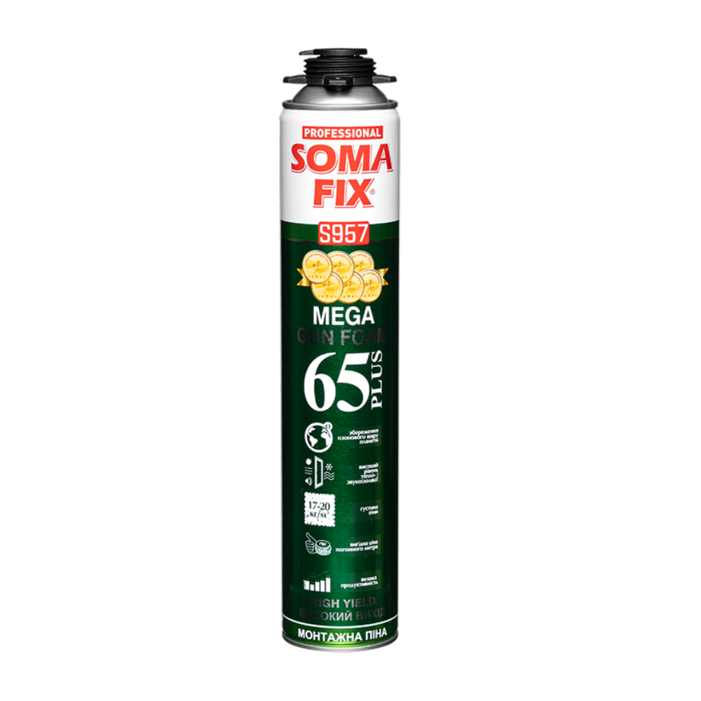 Монтажна піна SOMA FIX проф MEGA 65 Plus – це професійний вибір для тих, хто цінує якість, економічність та надійність у будівельних та ремонтних роботах.