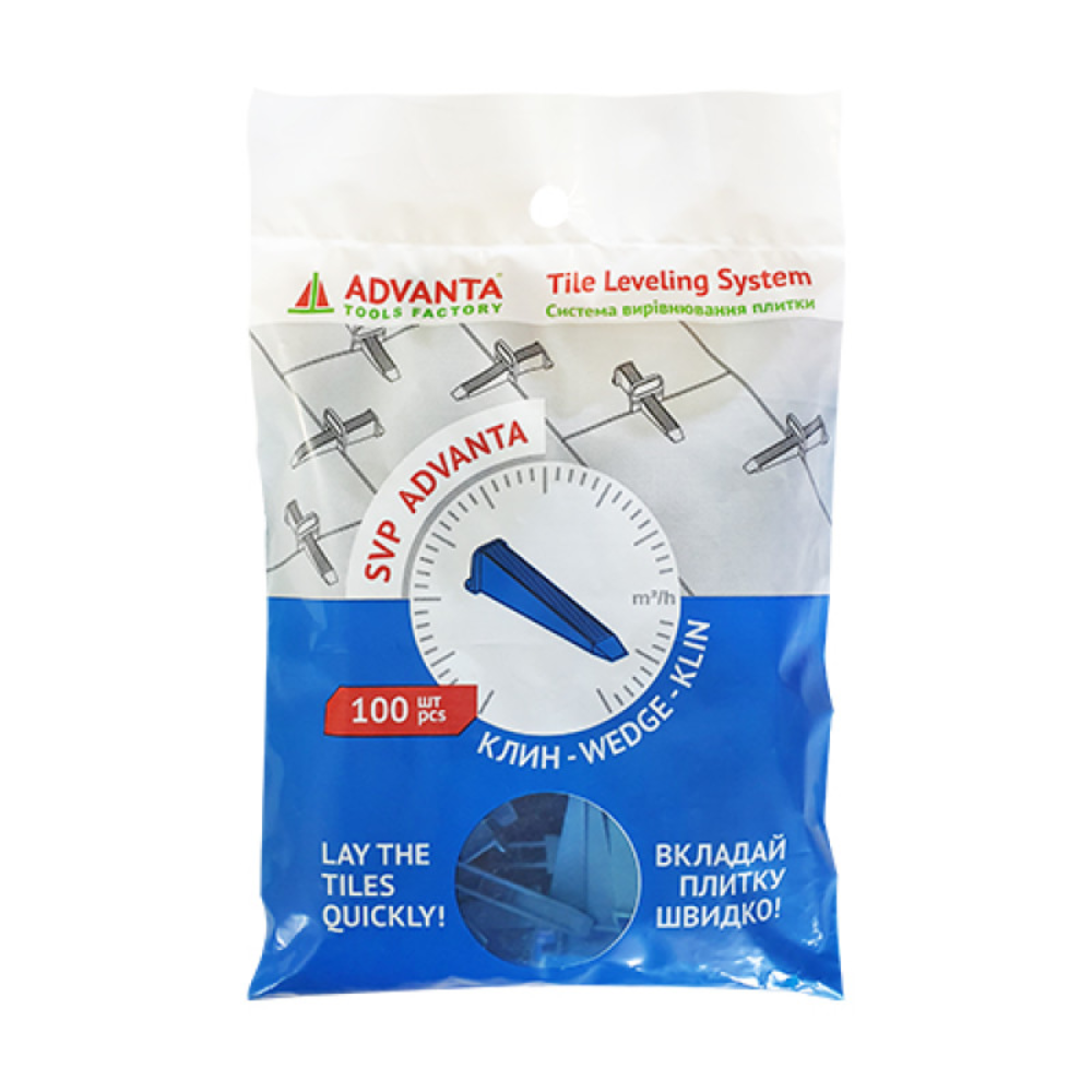 Смарт-клины для укладки плитки Advanta (100шт/упак) — это неотъемлемый компонент системы выравнивания плитки (СВП), разработанный для обеспечения идеально ровной поверхности и шва при укладке керамической плитки или керамогранита как на стенах, так и на полу. Клин Advanta является основным элементом, который создает необходимое усилие на основание-зажим, выравнивая плитку и надежно фиксируя её в нужном положении до полного затвердевания клеевой смеси. Это многоразовый элемент, что выгодно отличает его от зажимов, часть которых остается внутри шва. Рекомендуется использовать в сочетании с основами СВП Advanta для достижения максимальной эффективности и безупречного результата.