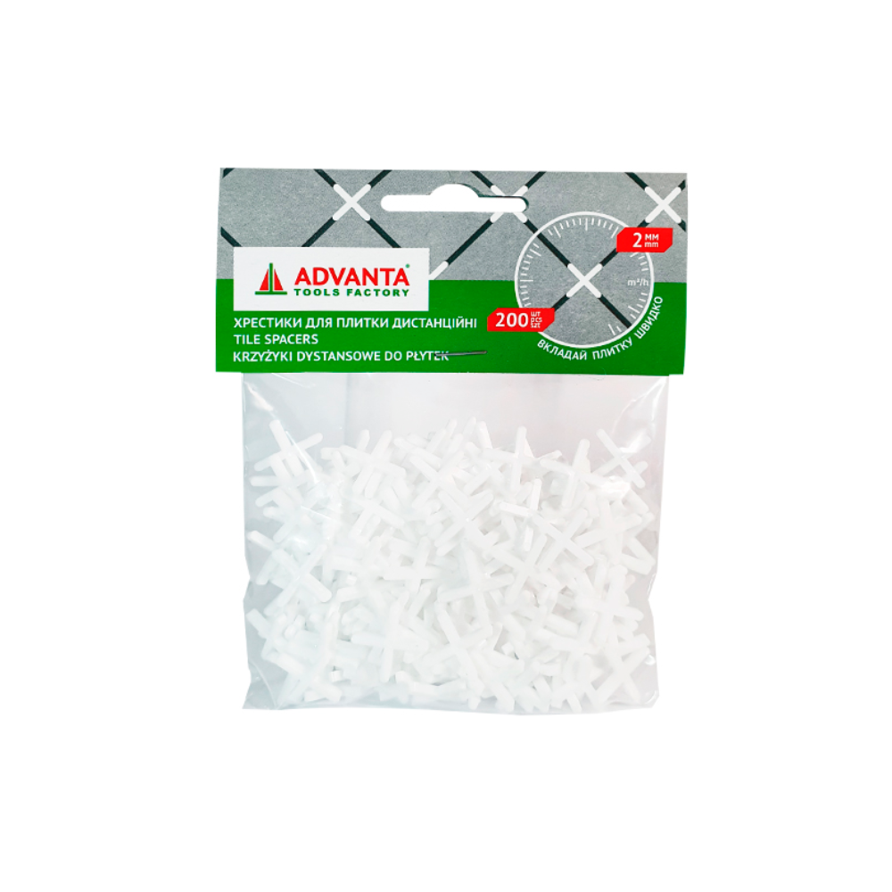 Досягніть ідеальних швів! Хрестики для плитки 2 мм ADVANTA (200 шт) – ваш секрет професійного укладання. Точність, стабільність, легкість використання. Замовляйте на ibudmarket.com.ua з доставкою по Україні!
