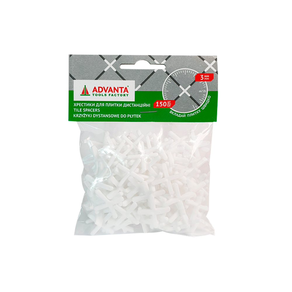 Створіть ідеальні шви з Хрестиками для плитки ADVANTA 3 мм! Легке укладання, точні шви, надійна фіксація. 150 шт/пач. Замовляйте на ibudmarket.com.ua з доставкою по Україні!