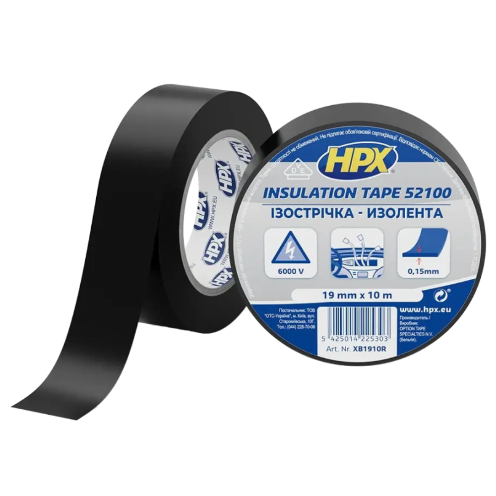Стрічка ПВХ ізоляційна HPX52100 19мм х 10м чорна (плівка)